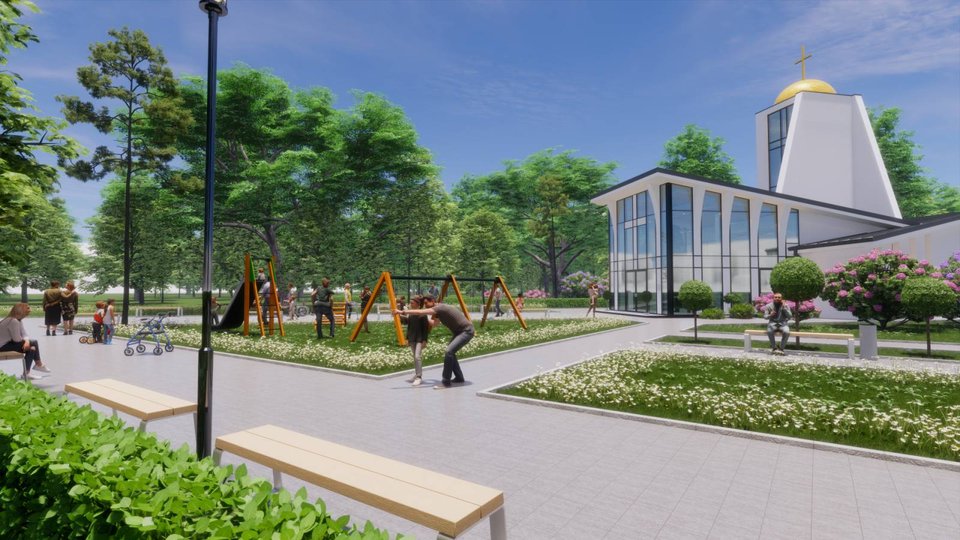 В Івано-Франківській архієпархії УГКЦ оприлюднили ескізи нової церкви біля озера, зазначивши, що храм після богослужінь трансформуватиметься в ігрову кімнату, де батьки зможуть залишити своїх дітей з вихователями.