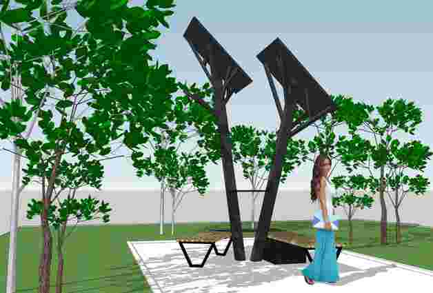 Як зазначається, споруда акумулюватиме енергію з сонячних панелей та матиме елемент декоративної лавки. Технологічне «дерево» також роздаватиме безкоштовний Wi-Fi та служитиме пристроєм на сонячних батареях для зарядки мобільних телефонів та планшетів.