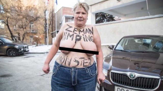 Активістки Femen заявили, що «жахливий вигляд кульгавого монстра повинен відлякати розсудливих чехів від кандидата Земана». «Перемога Земана - це перемога Путіна, а перемога Путіна - це смерть вільної Чехії», - заявили вони.