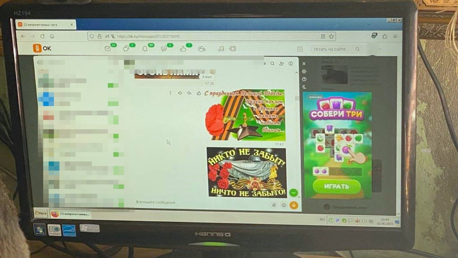 Поліцейські встановили, що 69-річна жінка створила акаунт у забороненій на території України соціальній мережі «Однокласники». Від свого імені жителька Коломиї неодноразово надсилала листівки знайомим із вітанням «Великої Перемоги», на яких було зображено георгіївські стрічки, червоні зірки з серпами та молотами.
