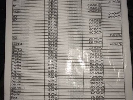 Знайдено також відомість про надходження коштів від "інвесторів" Януковича у 2006-2008 рр. – це сотні тисяч доларів. Фотокопію відомості у фейсбуку опублікувала кореспондент УП Анастасія Береза.
