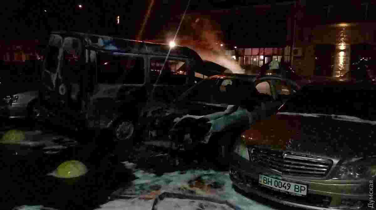 Перший спалах стався близько 03:00 на території житлового масиву «Райдужний». Як повідомляє місцеве видання «7 канал», одночасно спалахнули два автомобілі у різних кінцях автостоянки, між двома вогнищами було близько 150 метрів.