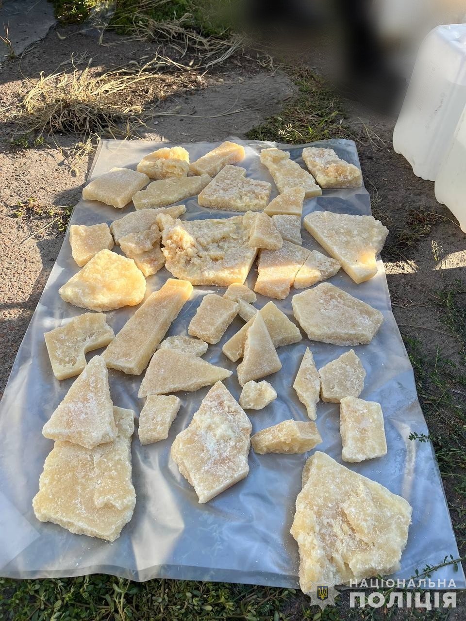 Слідчі Нацполіції України повідомили п’ятьом особам про підозру за незаконне виробництво, виготовлення, придбання, зберігання, перевезення, пересилання чи збут наркотичних засобів, психотропних речовин або їх аналогів в особливо великих розмірах (ч. 3 ст. 307 ККУ). За вчинене їм загрожує до 12 років позбавлення волі із конфіскацією майна.