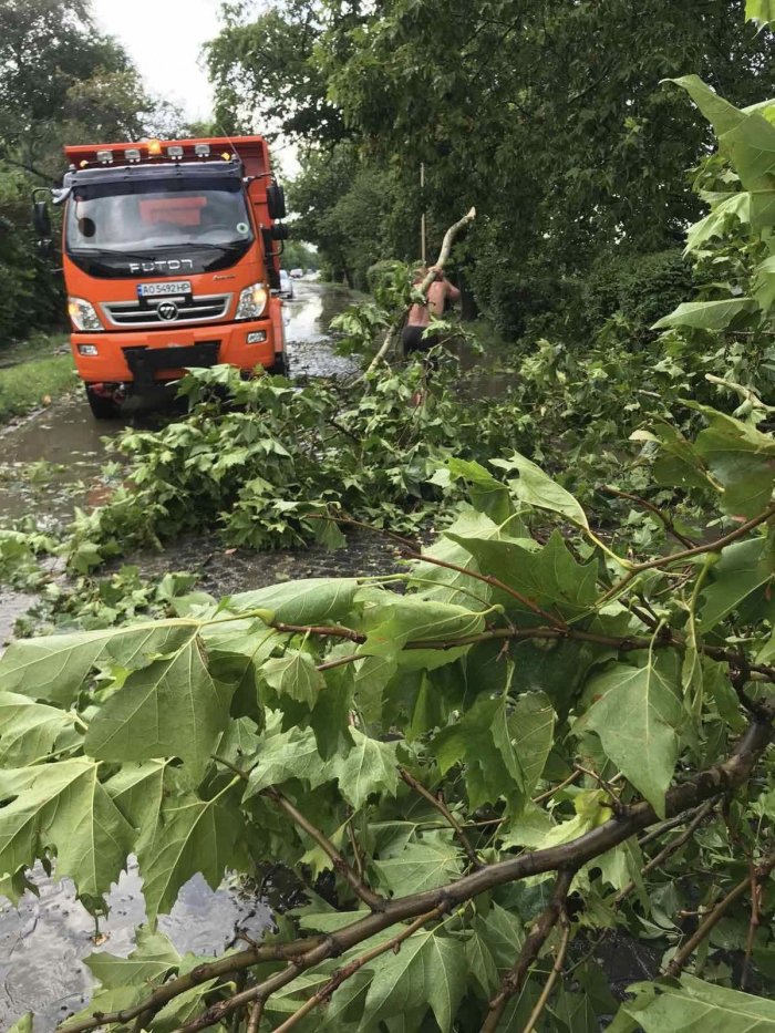 Наразі всі працівники комунальних служб вийшли на ліквідацію наслідків негоди. Триває розрізка дерев, які впали, а також викачування води з будинків та гаражів.
