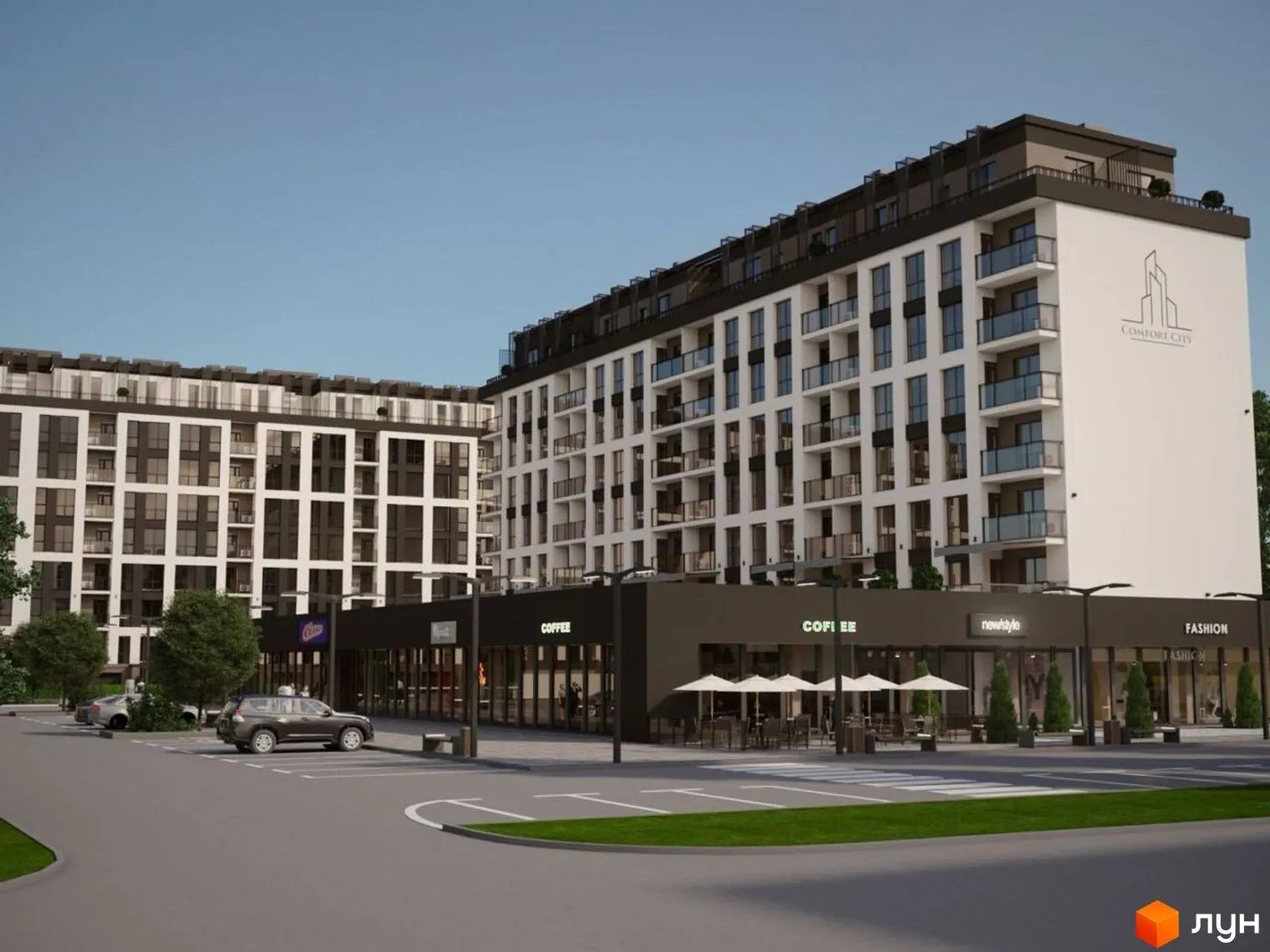 Тут вже введена в експлуатацію частина 8-поверхового ЖК Comfort City на 272 квартири. Забудовником є однойменна фірма, що належить ужгородцеві Владиславу Опіярі.