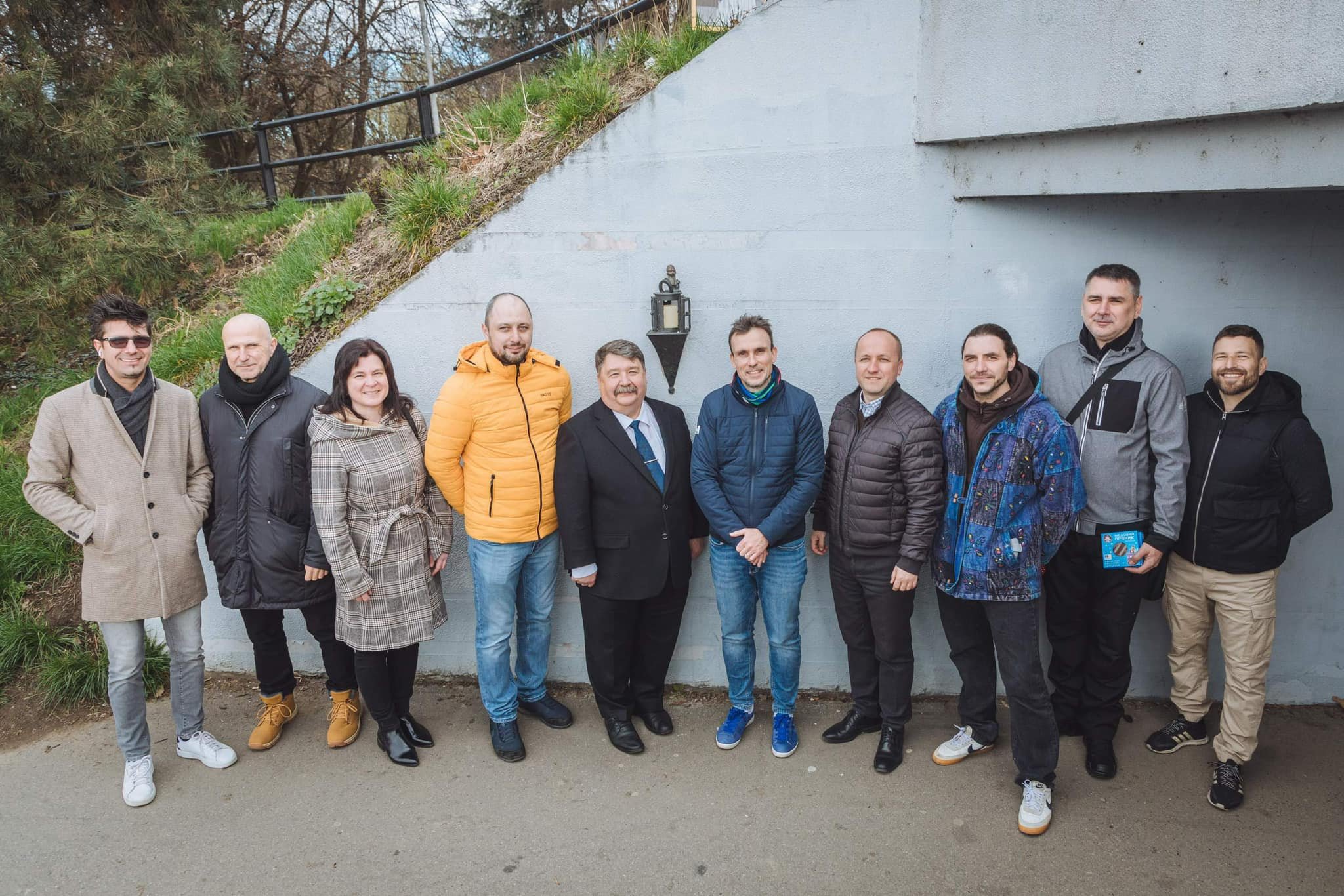 Міні-скульптуру відкривали Генеральні консули Словаччини та Угорщини в Ужгороді – Павло Паніс та Йожеф Бочкаї та представники чеської та польської громадськості. Це 65 скульптурка в обласному центрі Закарпаття. Нещодавно на перилах пішохідного мосту з’явився угорський скрипаль Нандор Плотені, а на сходах – мініатюрний пам’ятник на честь винахідника кулькової ручки.