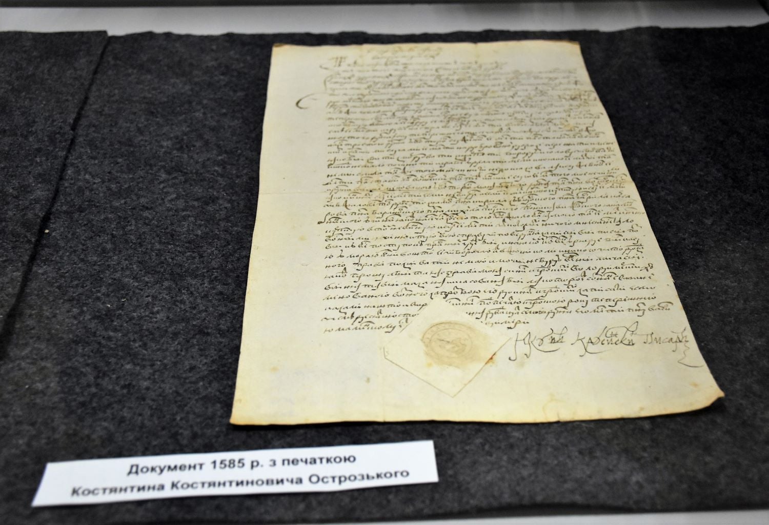 Документ Острозьких 1585 року у Рівненському музеї