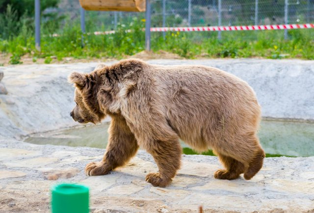 Ведмедицю привезли сюди після кількох років гастролів у мандрівному цирку. Зоолог каже, що після років у тісних клітках і вимог виконувати команди, тварини мають психологічні відхилення, можуть хитатися зі сторони на сторону, ховатися, гризти свої лапи до крові.
