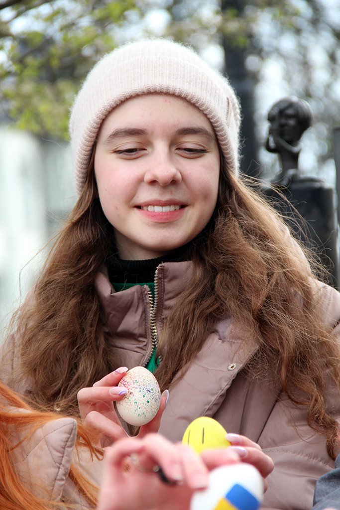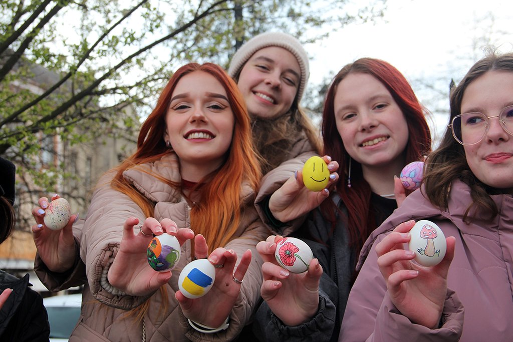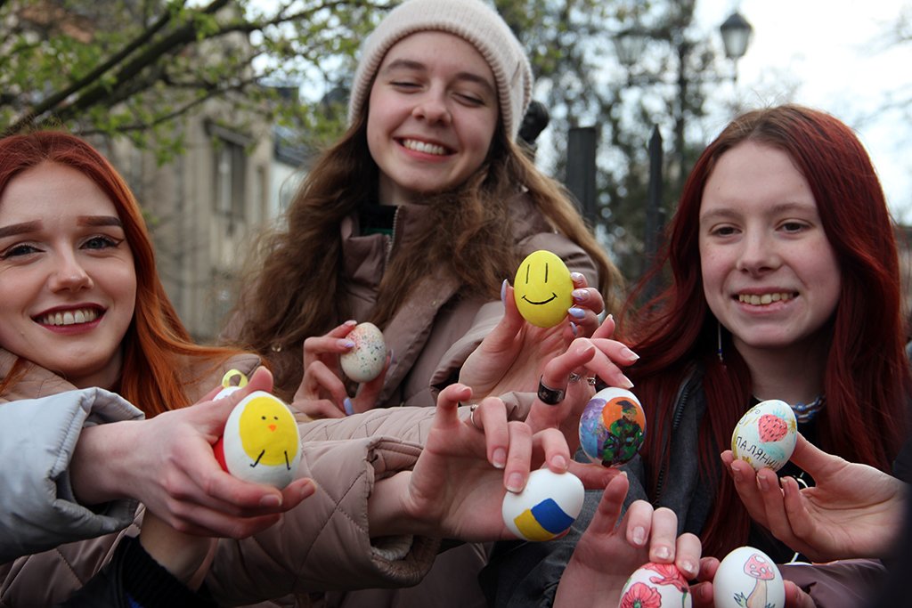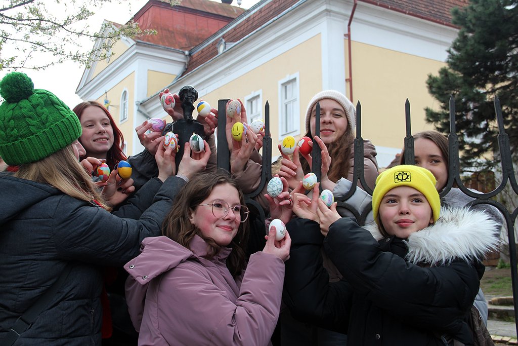 В Ужгороді студенти розписали великодні писанки у стилі поп-арт і у четвер, 6 квітня, провели традиційну передсвяткову акцію: принесли писанки до міні-пам'ятника художнику Енді Ворголу на площі Жупанатській поблизу художнього музею в центрі міста. Як розповіла ZAXID.NET ужгородська гідеса Марія Заболотна, акцію проводять уже дев’ятий рік поспіль і щоразу поп-арт малюнки на великодніх писанках відображають актуальну тематику: у «ковідні» роки це були зайчики у масках і зображення коронавірусу, у рік повномасштабного вторгнення – найбільш популярні фрази перших місяців великої війни, цьогоріч це також патріотичні малюнки і, зокрема, зображення відомого «професора з окопу» Федора Шандора, який є засновником акції.