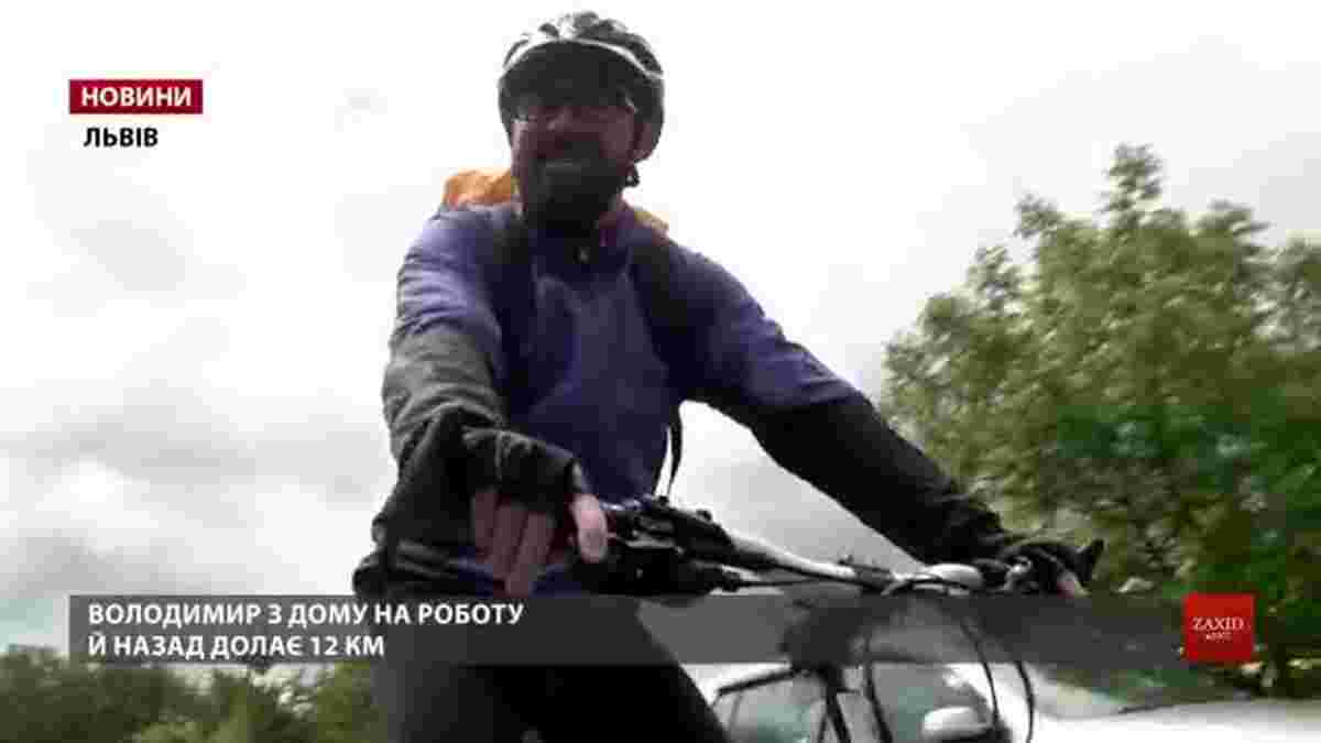 12-кілометрову відстань із дому на роботу щобудня накручує велосипедом Володимир. Каже так економить час і гроші, та ще й зміцнює здоров’я.