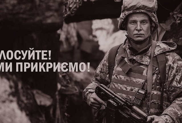 Напередодні першого туру виборів з подачі Міністерства у справах ветеранів, котре очолює близька соратниця президента Ірина Фріз, з’явилися ролики та білборди з військовиками, корті промовляли до громадян: «Голосуйте! Ми прикриємо!». Напевно, жоден з кандидатів на посаду президента не відпрацьовував тему армії так активно, як Порошенко, котрий за свою каденцію перетворився з «голуба» на «яструба». Природно, він сподівався, що це відіграє важливу роль на виборах і мобілізує його потенційних прихильників.