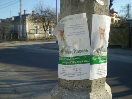 Найбільше ж агітації по місту виявлено за Романа Коваля. При цьому, в багатьох випадках (наприклад, на вулиці Остафова) виглядає вона досить свіжою, тому виникає підозра, що була розміщена напередодні дня голосування, в суботу. Крім того, до агітаційного плаката за кандидата часто доклеюється листок формату А4 із закликом обирати №3 Романа Коваля. На ньому не зазначено жодних відомостей про установу, що здійснила друк, його тираж, інформацію про осіб, відповідальних за випуск.