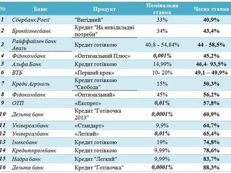 Як видно з таблиці вище у всіх найбільших українських банках, що займаються споживчим кредитуванням, реальні ставки відрізняються від номінальних.