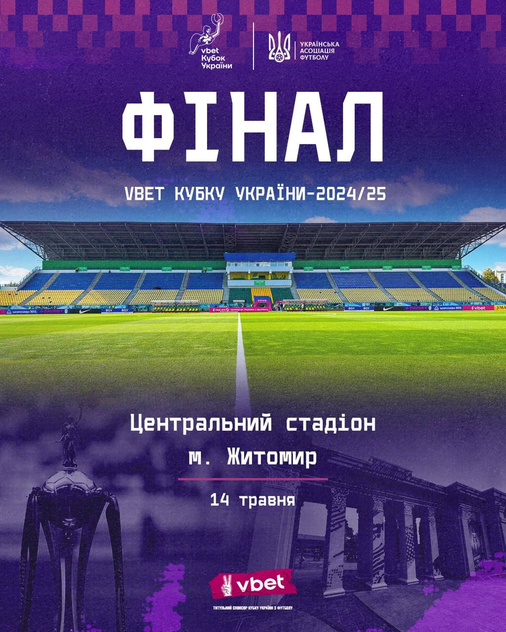 Фінальний поєдинок Кубка України сезону 2024/25 відбудеться на Центральному стадіоні у Житомирі. Таке рішення у вівторок, 4 березня, було ухвалено на засіданні Виконкому УАФ. Житомир стане містом-господарем матчу такого рангу вперше в історії.