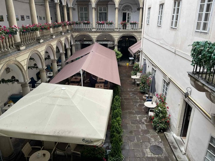 Власник популярного ресторану «Італійський дворик», який праює в історичному музеї у центрі Львова, облаштував у подвір’ї літній майданчик, який перекрив фактично усю площу пам’ятки. Після скарг мешканців міська рада перевірить законність встановлення такого літника.