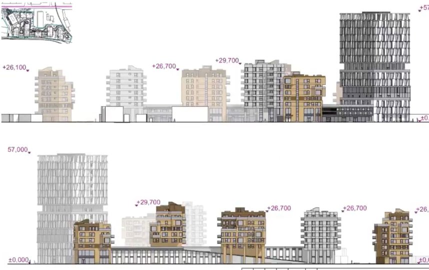 Йдеться про забудову ділянки площею майже 1,4 га на вул. Навроцького, 69. Зараз на цій території розташовані кілька занедбаних господарських будівель до яких ведуть недіючі залізничні колії. Натомість тут планують збудувати багатофункціональний комплекс із житлом на верхніх поверхах, вбудованими громадськими приміщеннями, дитсадком і житлом. Згідно з МУО, висота будівель коливатися від 23,7 до 57,7 м.