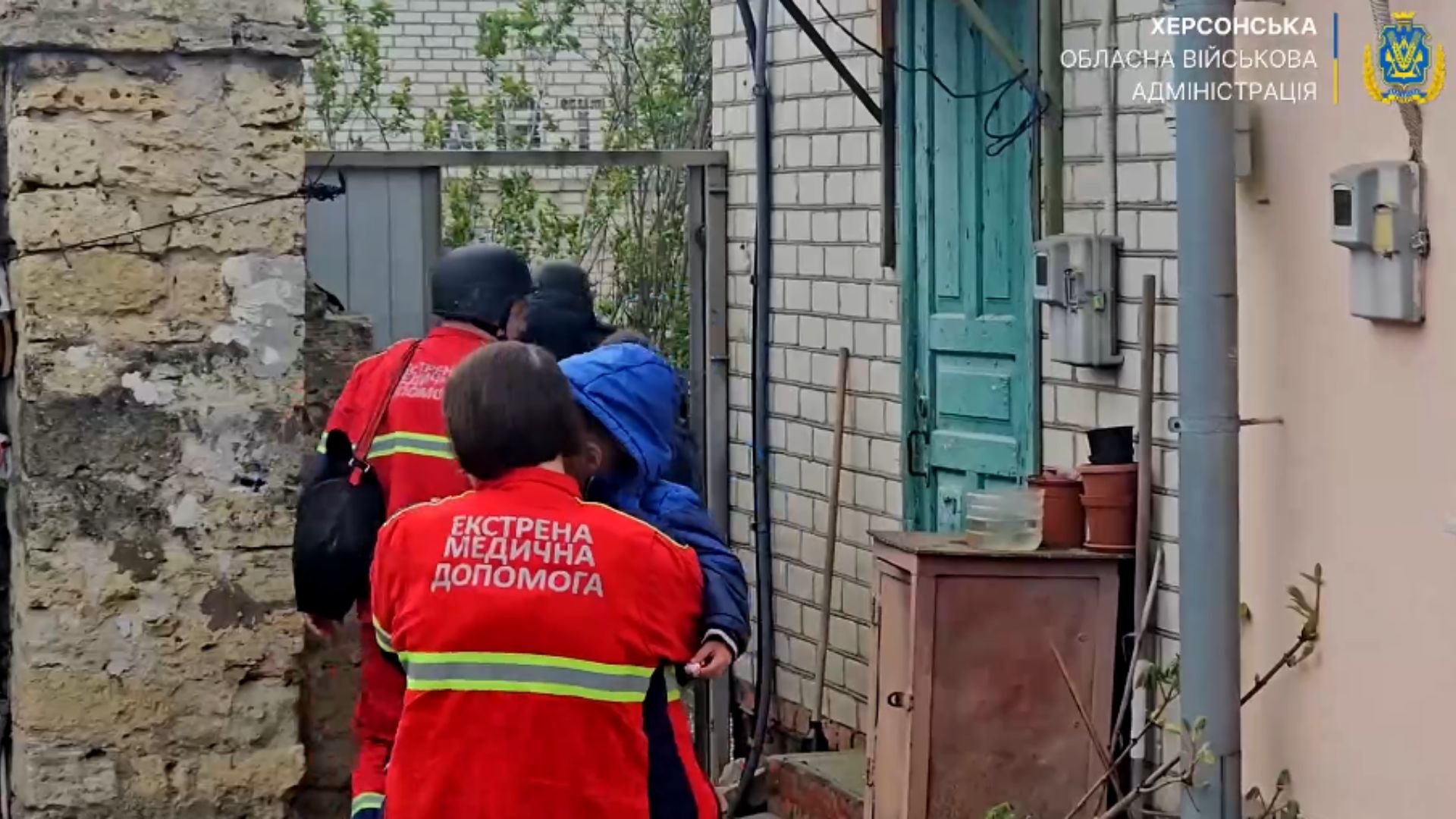 Жінку на шостому місяці вагітності та малолітнього хлопчика вдалося дістати з-під завалів. 31-річна херсонка зазнала вибухової травми та ушкоджень голови, а її дитина має контузію та вибухову травму. За словами жінки, після обстрілу на неї впала стеля.
