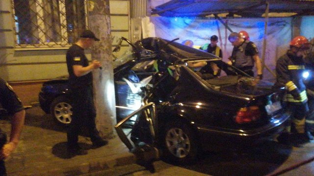 В ніч на 5 вересня у центрі Львова автомобіль розбився об стовп. Водія довелося вирізати з понівеченої машини. Він у важкому стані.