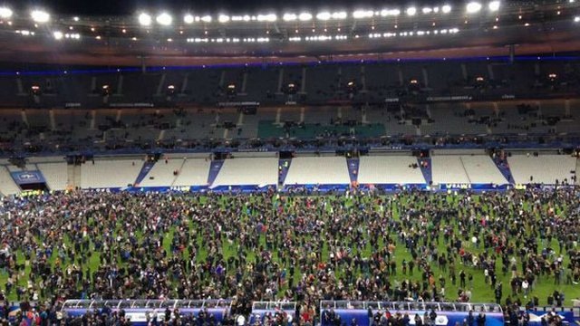 Як повідомляє кореспондент FRANCE 24 Стефан де Врей, у пабі вибухнуло 3 гранати. Президента Франції Франсуа Олланда евакуювали з матчу. Вболівальників із міркувань безпеки на деякий час залишили у чаші стадіону. Звук від вибуху гранат було чути під час матчу Франція - Німеччина.
