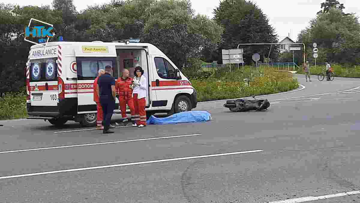 Внаслідок аварії водій скутера від отриманих травм загинув на місці події. У водія вантажівки відібрано кров для перевірки стану сп’яніння.