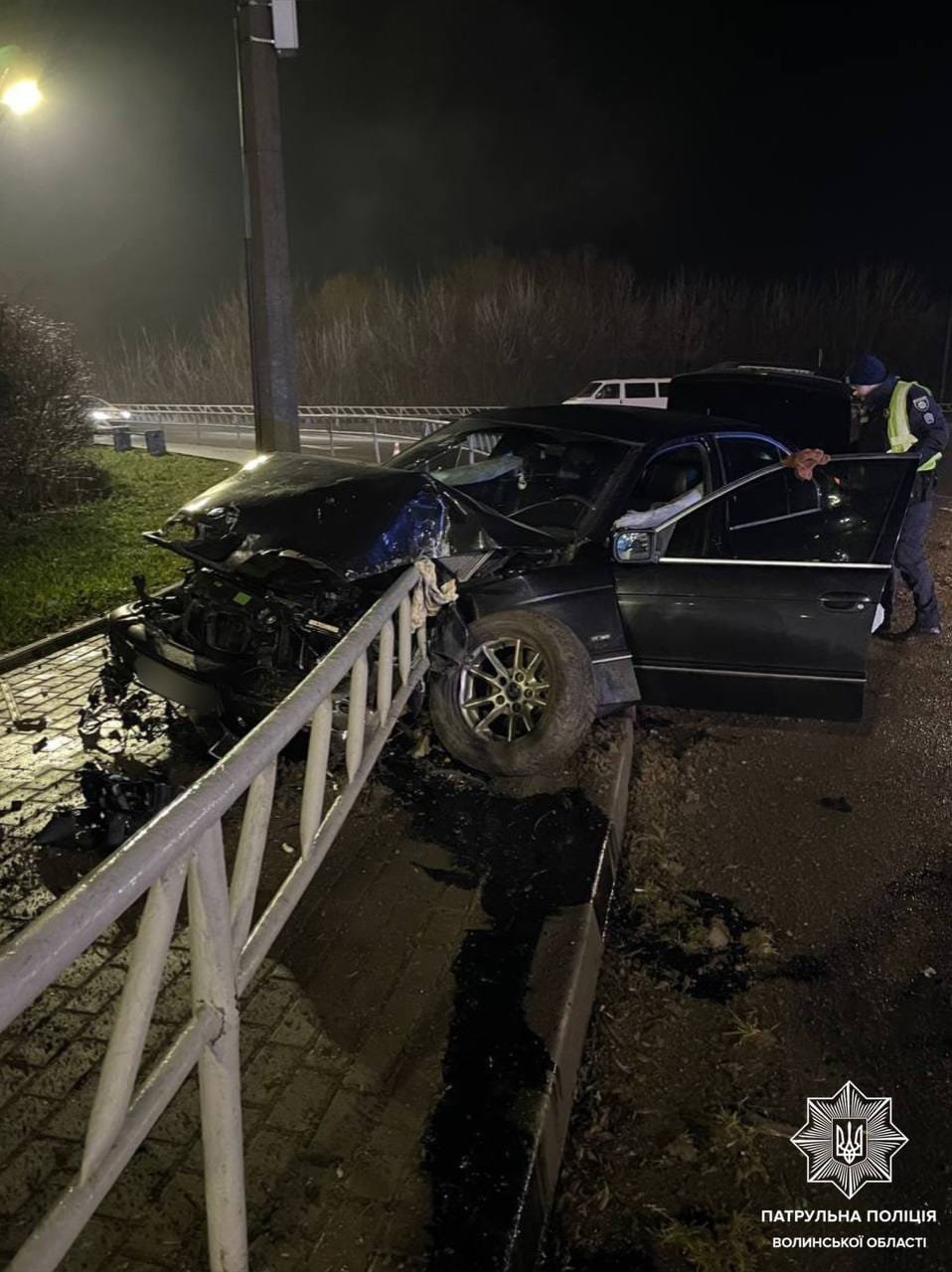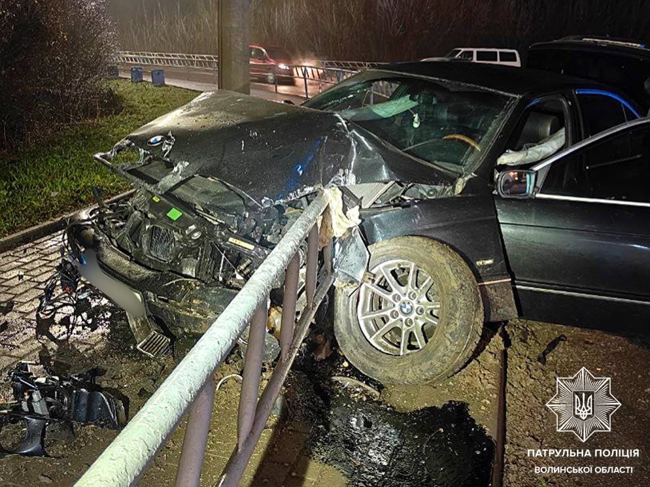 Як повідомила прес-служба патрульної поліції Волині, аварія сталась близько 01:00 вночі у середу, 3 січня. На перехресті вулиць Набережної та Шевченка поліцейські виявили пошкоджений автомобіль BMW.