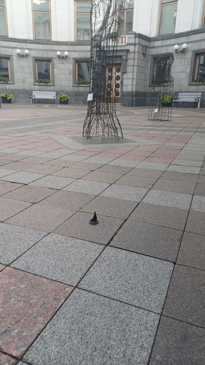«Після сьогоднішньої нічної атаки російських дронів уламки збитого беспілотника виявлено біля будівлі Верховної Ради України», – йдеться у повідомленні.