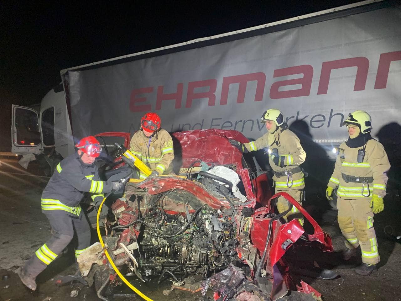 Біля Рівного на трасі «Київ-Чоп» сталась аварія за участі легковика та вантажівки. Правоохоронці встановили, що аварію спричинив водій легковика, який з невідомих причин виїхав на зустрічну смугу, де саме їхала фура. Внаслідок ДТП 22-річний водій легковика загинув на місці. З понівеченого авто його деблокували рятувальники.
