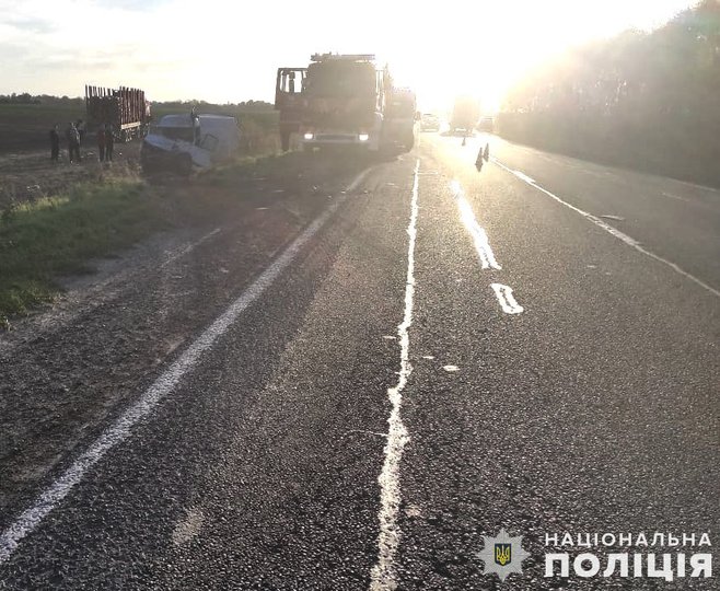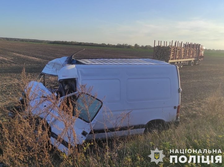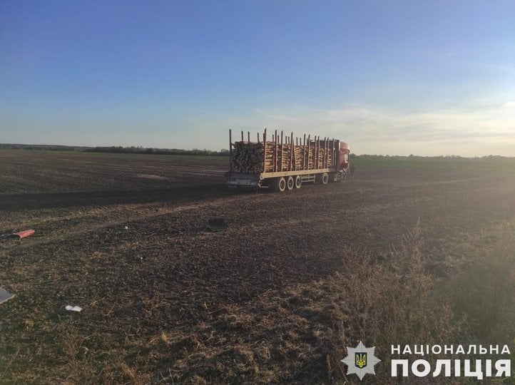 Як видно з оприлюднених поліцією фото, вантажівка перевозила деревину. Від удару обидва автомобілі злетіли з траси. Внаслідок ДТП водій мікроавтобуса загинув на місці.
