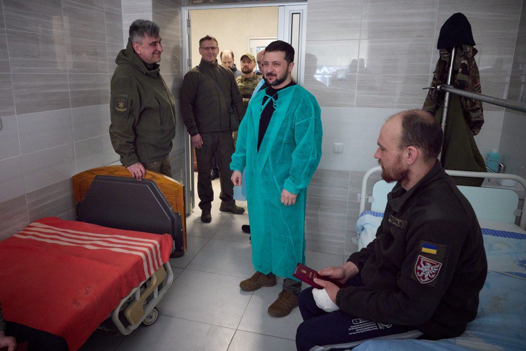 Крім того, президент відвідав на Донеччині госпіталь, у якому лікують поранених українських військових, зокрема захисників Бахмута. Володимир Зеленський поспілкувався з ними та нагородив державними відзнаками.
