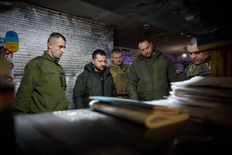 Президент України Володимир Зеленський у п'ятницю, 29 грудня, відвідав позиції 110-ї окремої механізованої бригади імені генерал-хорунжого Марка Безручка в Авдіївці на Донеччині. Зеленський заслухав доповідь командира бригади та героя України Миколи Чумака. Військовий розповів, що оборонці Авдіївки міцно тримають позиції та беруть у полон росіян.