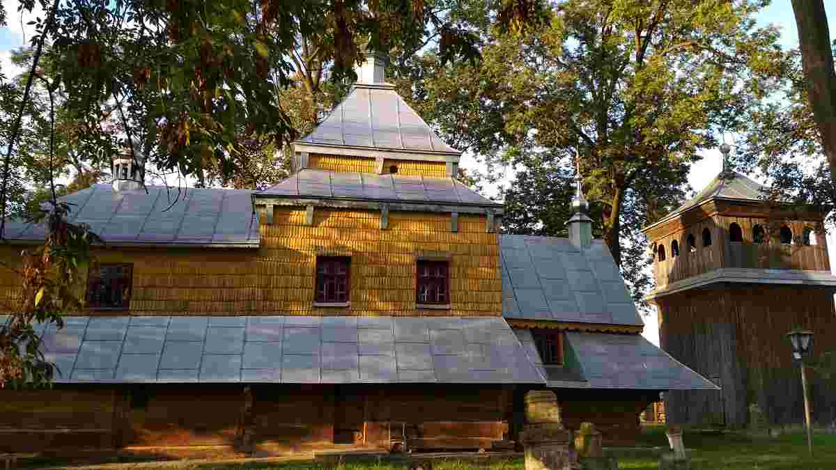 Зовнішній вигляд церкви не сильно привертає увагу унікальністю: бляшане покриття даху та яскраво жовта фарба стін ніяк не свідчать про автентику. Однак на східній стіні нави є унікальний стінопис 1610-х років – найдавніший серед дерев’яних церков Львівщини і другий в Україні, як зазначає краєзнавиця Олена Крушинська. Це намальований іконостас, який передував різьбленому. За стилістикою він схожий з розписами церкви Святого Духа в Потеличі.