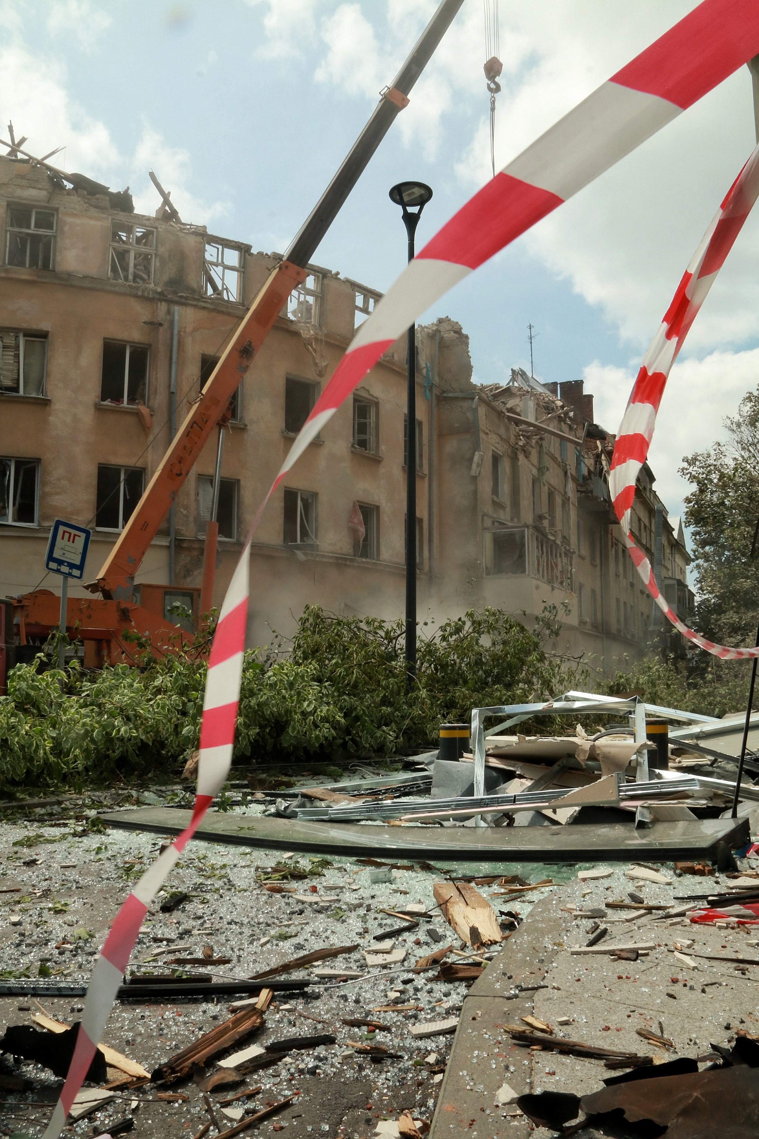 Перпендикулярна до Сахарова вулиця Стрийська перекрита для руху автомобілів та автобусів. На ній лише швидкі, транспорт поліції та рятувальників, сміттєвози, які відвозять руїни.