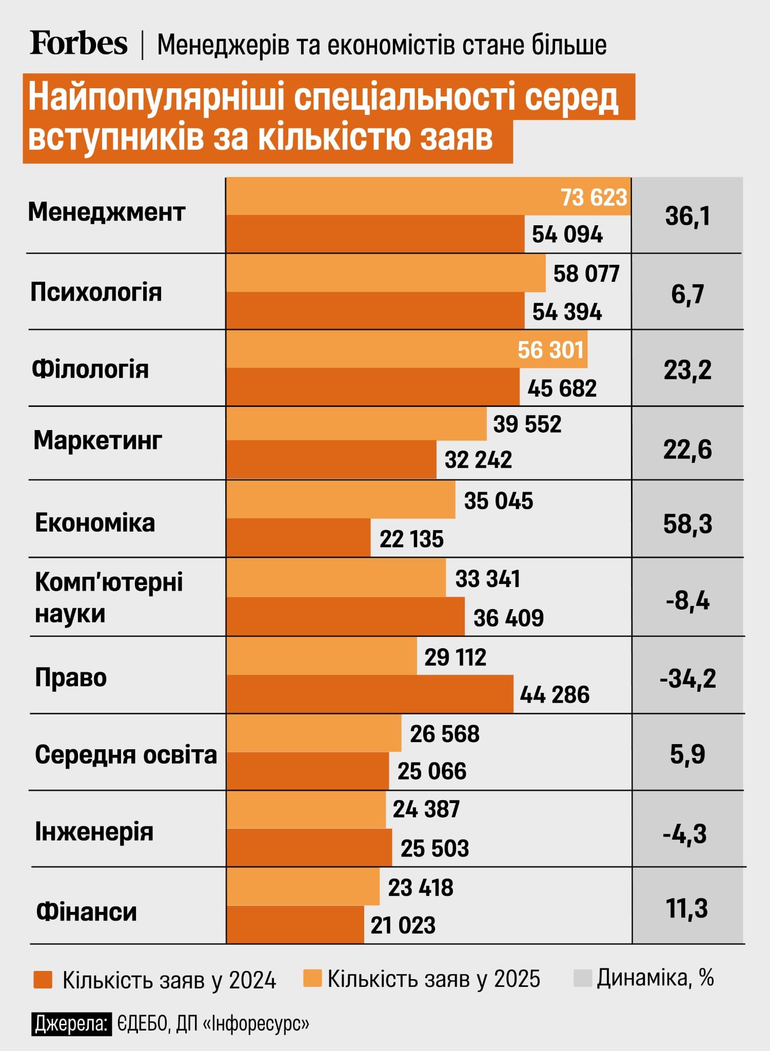 Менеджмент чи психологія: які спеціальності найпопулярніші серед вступників у 2025 році