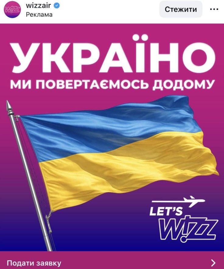 Авіакомпанія Wizz Air пояснила свою рекламу про повернення в Україну
