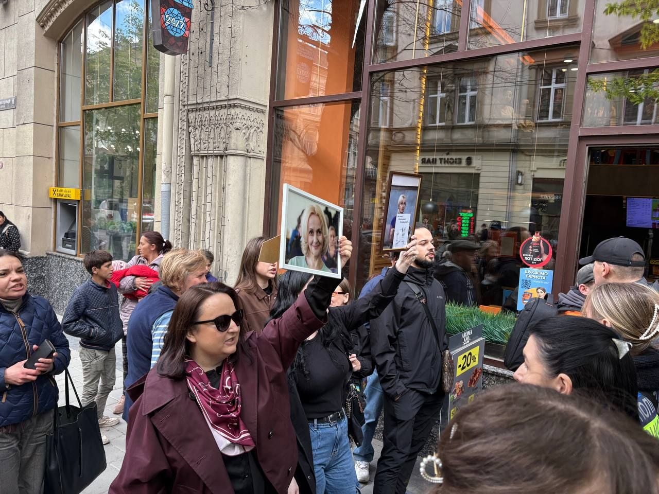 Софія Особа з портретом Ірини Фаріон під час того, як привезли Зінченка. Фото ZAXID.NET