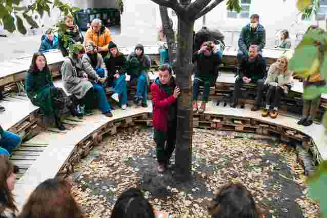 Так вишня, що повільно росте у дворику міської ратуші, врешті-решт стає вартою власного «еко-театру» (на головному фото), який створив Влодко Кауфман.