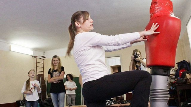 ГО «Самобутня школа Асгарда» організувала у Львові безкоштовний майстер-клас для жінок, на якому розповідали про те, як можна захистити себе, якщо на вас нападає грабіжник. Заняття проводила чемпіонка світу з кікбоксингу Ірина Лащенко.