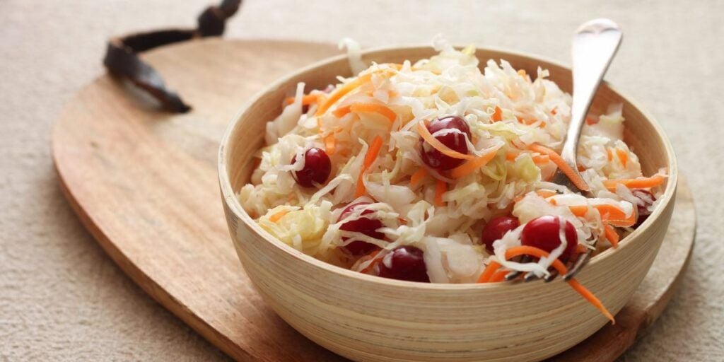 2. Квашена капуста. Найсильніший натуральний пробіотик, містить вітамін С у стабільній формі, що зберігається навіть взимку, підтримує мікробіом і стійкість до інфекцій, містить молочнокислі бактерії, що зменшують здуття. Мікробіом напряму впливає на імунітет, тож квашена капуста – найпростіший спосіб його підтримувати.