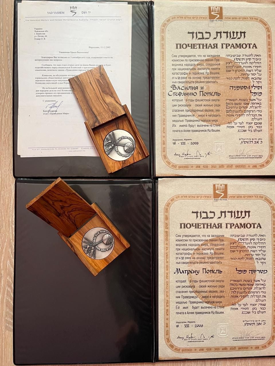 Відзнаки Праведників народів світу, видані Попелям (фото проєкту «Слово Праведника»)
