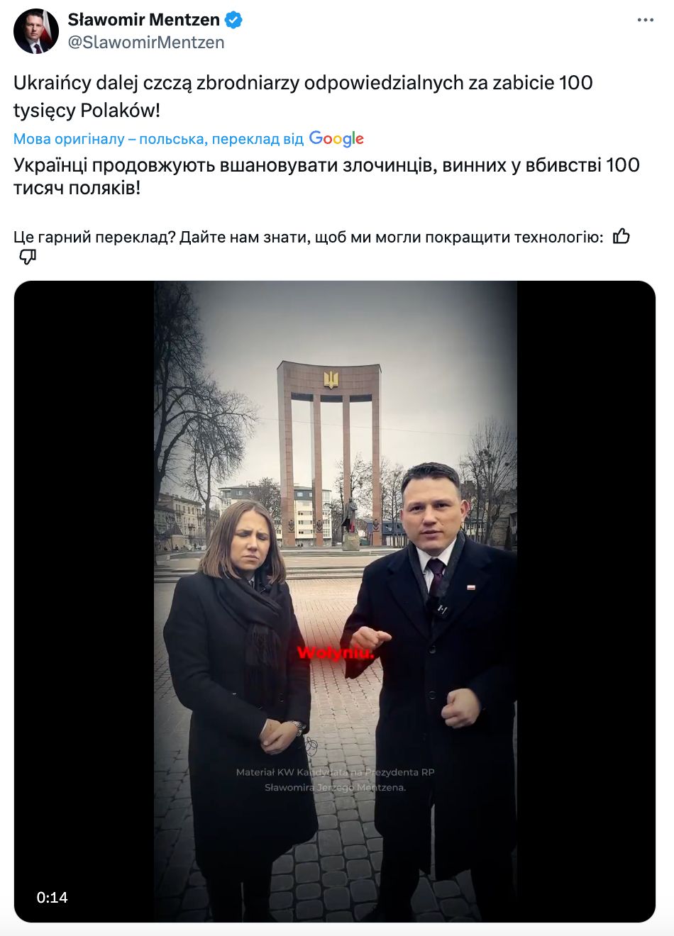 Він записав відео на фоні памʼятника Степанові Бандері, назвав українського діяча «терористом часів Другої світової», і стверджував, що Львів – польське місто.