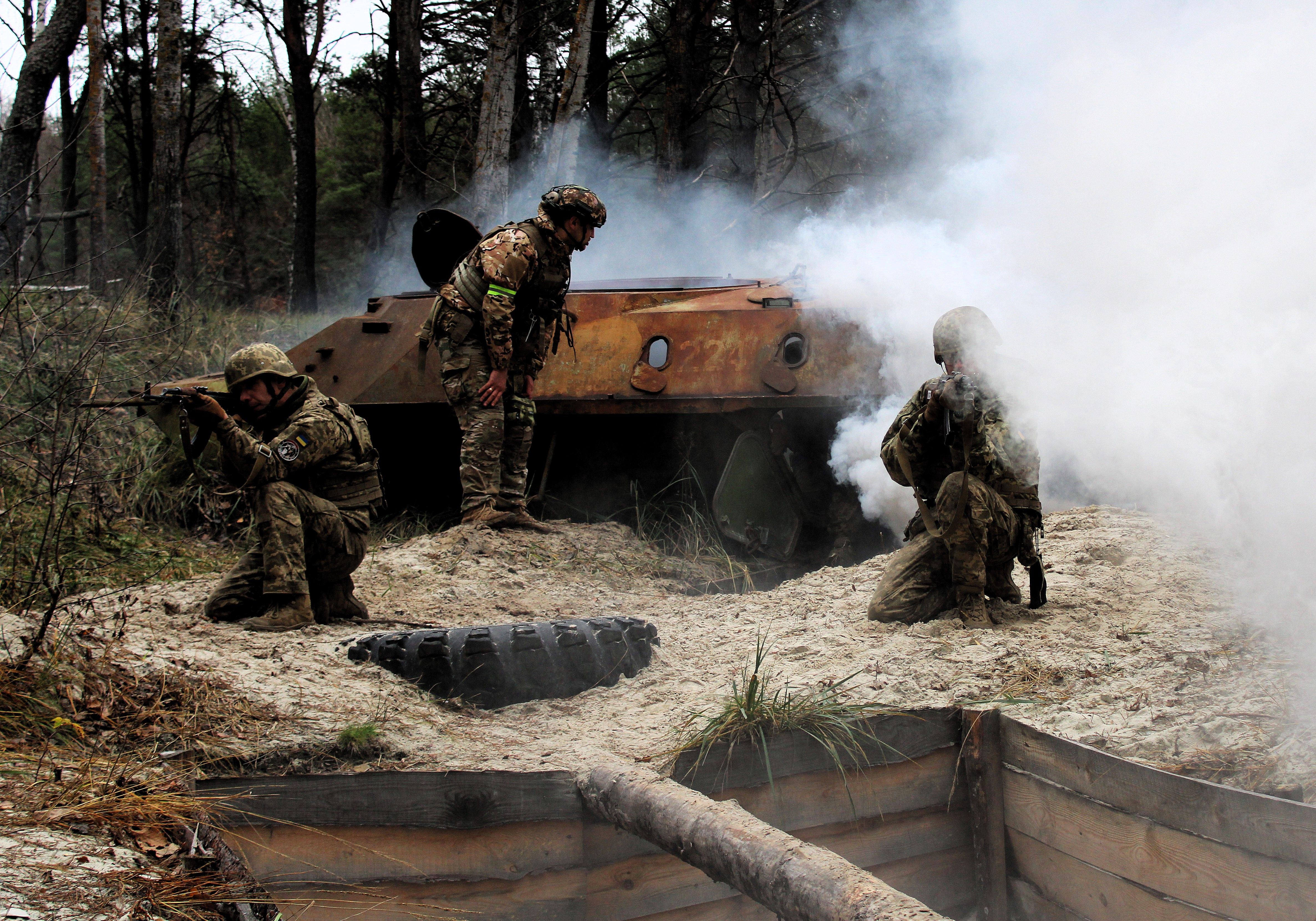 «Крий свій сектор! Наступна двійка, вперед! Швидше, побратими чекають!», – щосили кричить сержант, інструктор навчального центру. Його підопічні тим часом долають стіну та руїни будівлі, пробігають колодою через урвище, поміж автомобільних покришок, які хаотично розгойдуються. А далі пірнають в люк пошкодженої бронемашини і вилазять з неї з протилежного боку. Не забуваючи при цьому прикривати побратимів, стежити за ймовірним противником та виявляти мінні загородження, які можуть бути встановлені на маршруті.