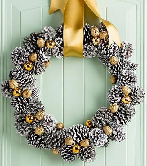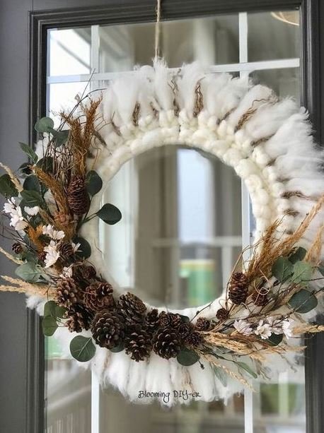 Використовуйте кільця з березових гілок або з виноградної лози, а потім прикрасьте їх шишками, жолудями та штучним снігом для «зимового» ефекту, щоб отримати віночок в природному стилі.