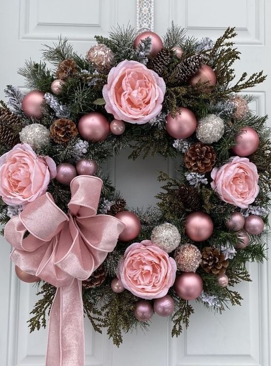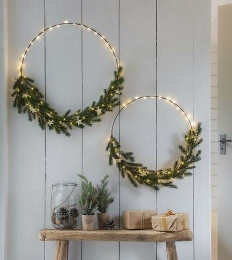Традиційні хвойні вінки – безпрограшний класичний вибір. Як основу використовуйте свіжі гілки хвойних порід або кріпіть їх до основи з інших матеріалів. Прикрасьте їх сосновими шишками, червоними ягодами та святковими бантами, щоб створити елегантний вигляд.