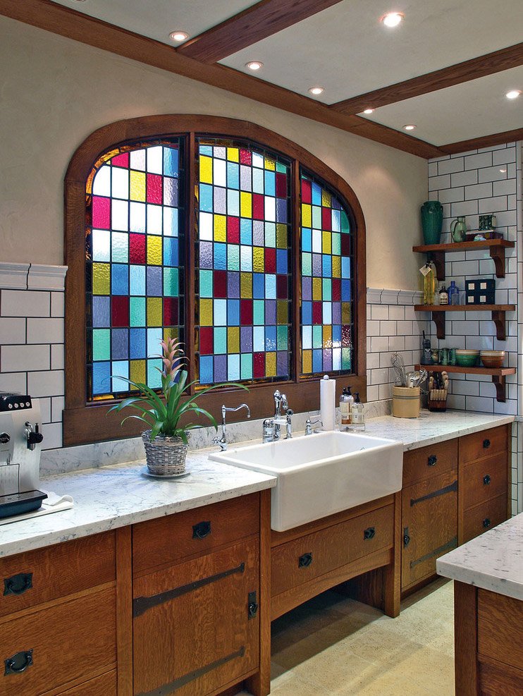 Вітражні вікна. Дуже ефектно виглядає вітражне вікно, яке, зокрема, можна зімітувати за допомогою тієї ж декоративної плівки.