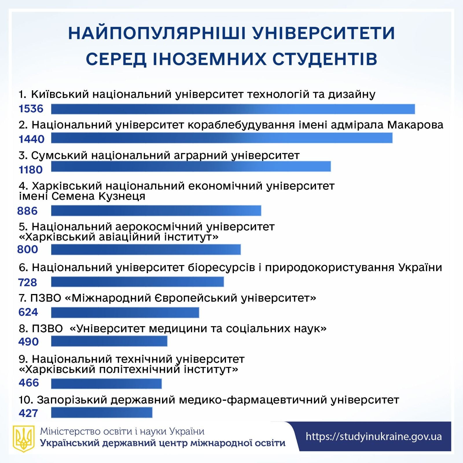 Найпопулярніші серед іноземців університети України (графіка УДЦМО)