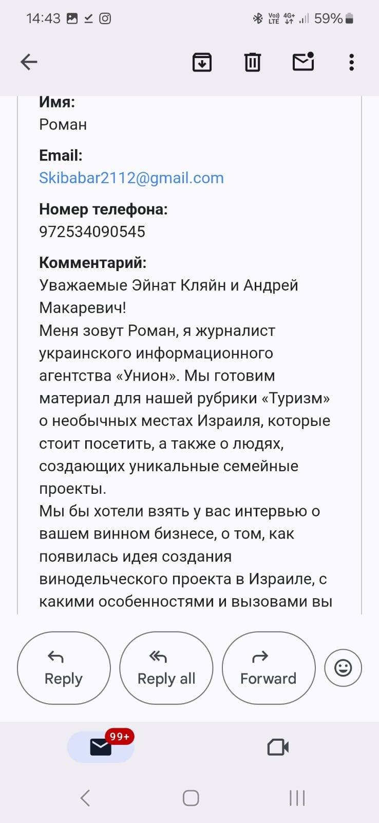 З Ізраїлю видворили росіянина, який представився кореспондентом УНІАН Романом Скибою і намагався взяти інтерв'ю у лідера гурту «Машина времени» Андрія Макаревича та його дружини Ейнат Кляйн. Чоловік заявив, що хоче поспілкуватися про виноробний бізнес Макаревичів в Ізраїлі. Музикант на своїй сторінці у Facebook розповів, що після повідомлень псевдокореспондента звернувся до поліції, яка також затримала його спільника.