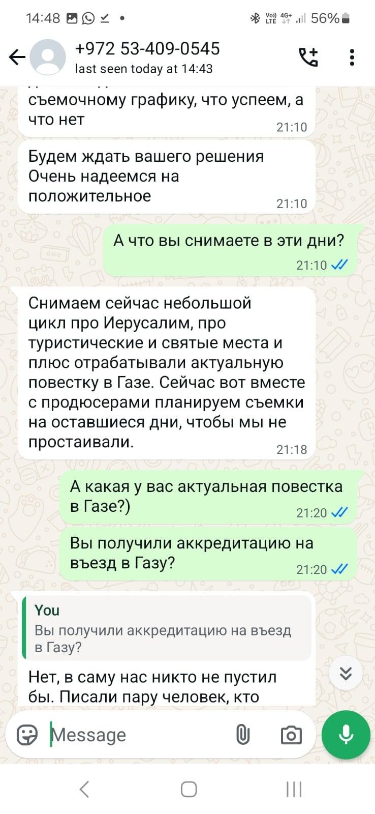 «Від фрази "журналіста" "відпрацьовуємо актуальну повістку по Газі" тхнуло таким гебешним кабінетом, що ми звернулися в поліцію. В Ізраїлі таке вважають злочином. Чекаємо розвитку подій. Від себе хочу спитати – хлопці, чого ж ви так погано працюєте», – зазначив Макаревич.