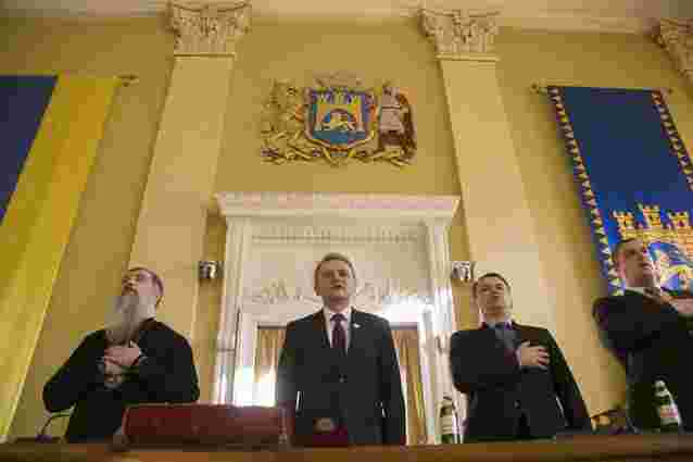 24 листопада відбулося перше засідання Львівської міської ради, на якому депутати присягнули на вірність львів'янам, мер просив допомоги у Бога, а сім отців бажали присутнім мудрості.