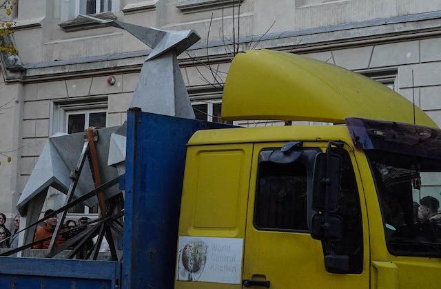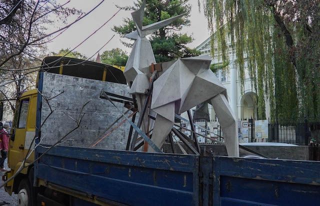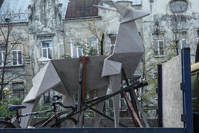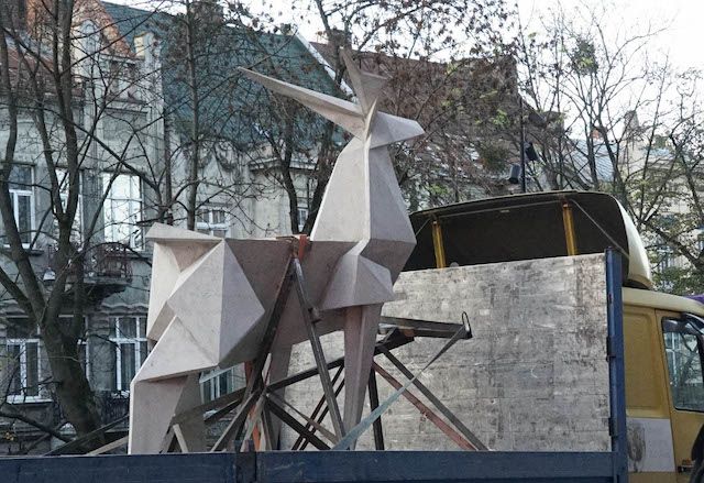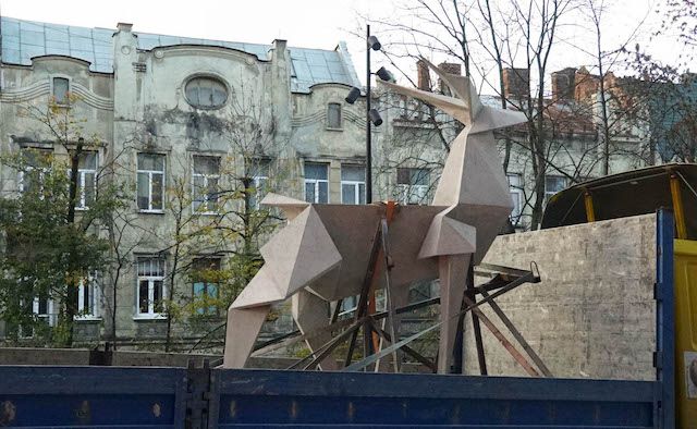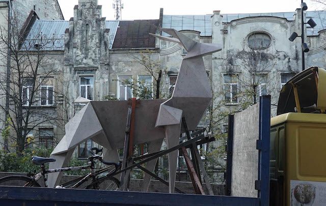 Львів – останнє місце в Україні, далі він за кордон поїде. Його перевантажать на іншу вантажівку, яка поїде до Польщі. У Білостоку в грудні буде персональна виставка Жанни Кадирової. А вже на початку наступного року він попрямує до Венеції. Це насправді буде ще той виклик, бо в тому місці, де відбувається бієнале, у Джардіні, немає дороги, доведеться його якось вантажити на човни. Так що цей олень матиме багато пригод.