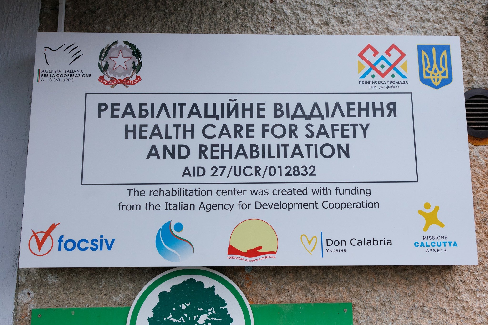 Реабілітаційне відділення у селищі Ясіня Рахівського району відкрили завдяки українсько-італійському проєкту «Health care for safety and rehabilitation», який реалізовувався за фінансової підтримки Італійської агенції з питань Розвитку Співробітництва (AICS) у співпраці з італійськими організаціями Focsiv, Missione, Calcutta, FAV. Загальна вартість проєкту – 280 тисяч євро.